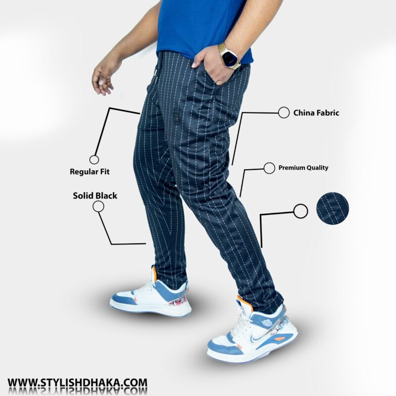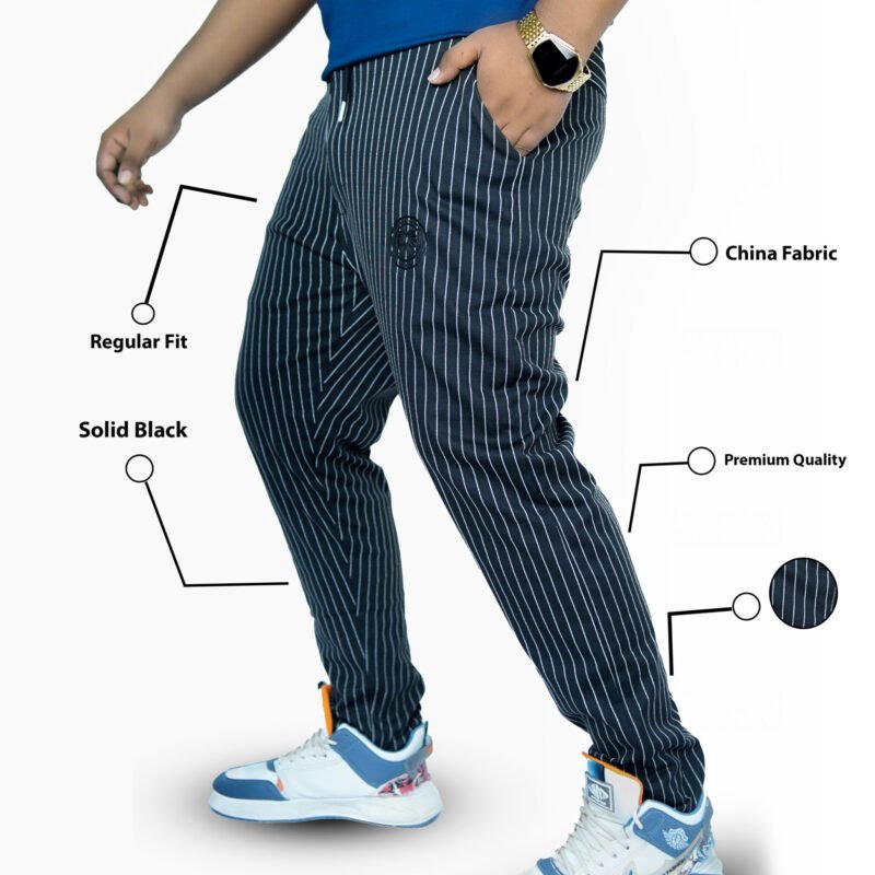 Men’s Mid Rise Stripe Trouser (Black)